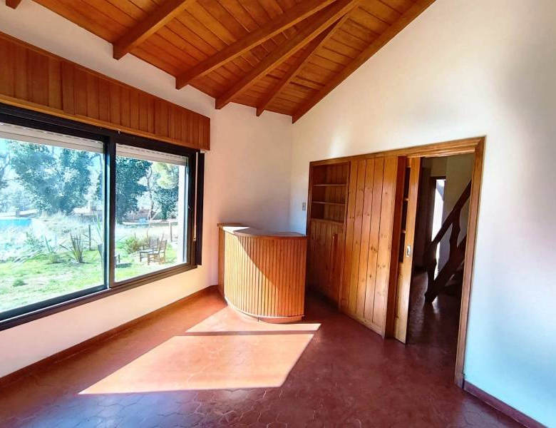 - Distribuida en 2 habitaciones, cocina, altillo, amplio living comedor con hogar a leña, quincho cubierto con parrilla y garaje cubierto al frente.