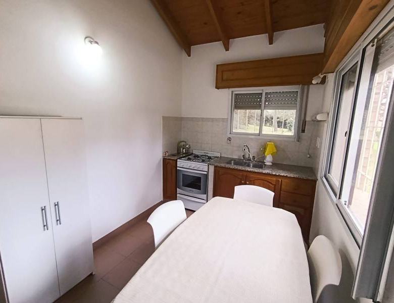 - 2 habitaciones, entre piso, cocina, amplio living comedor con hogar a leña.