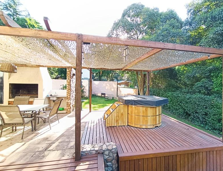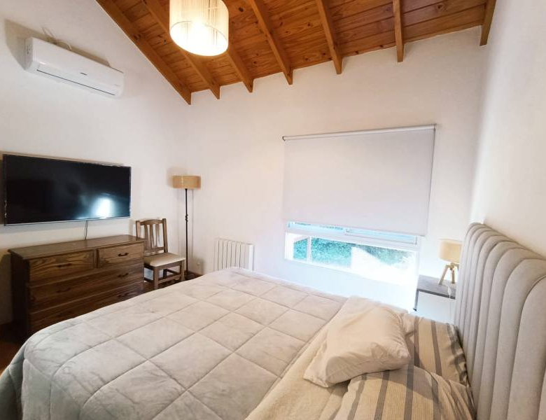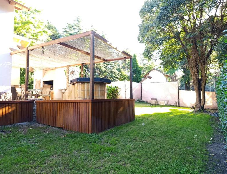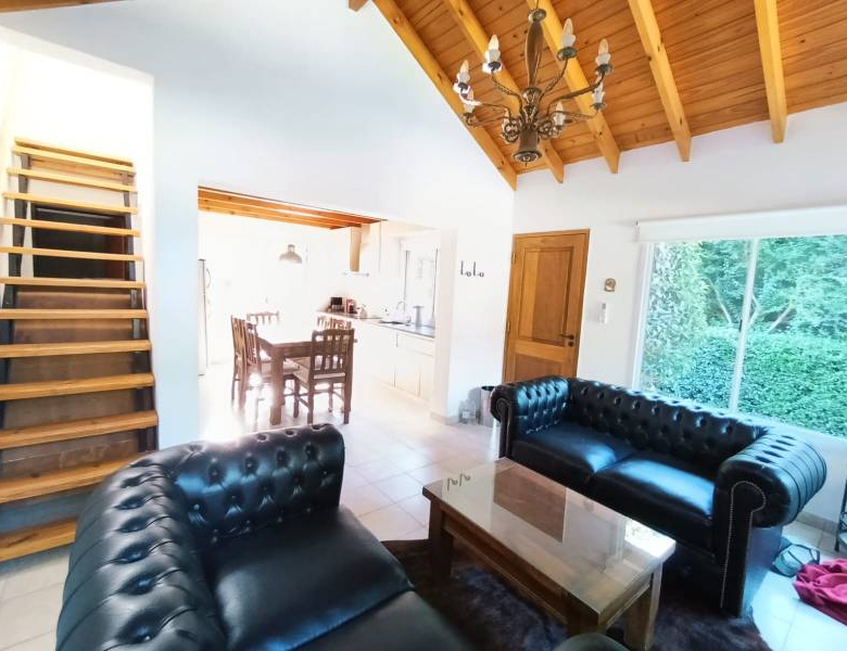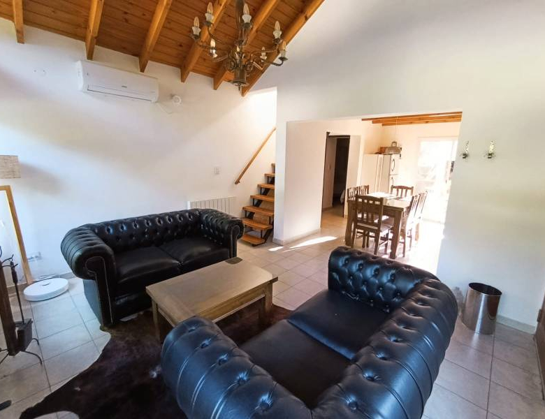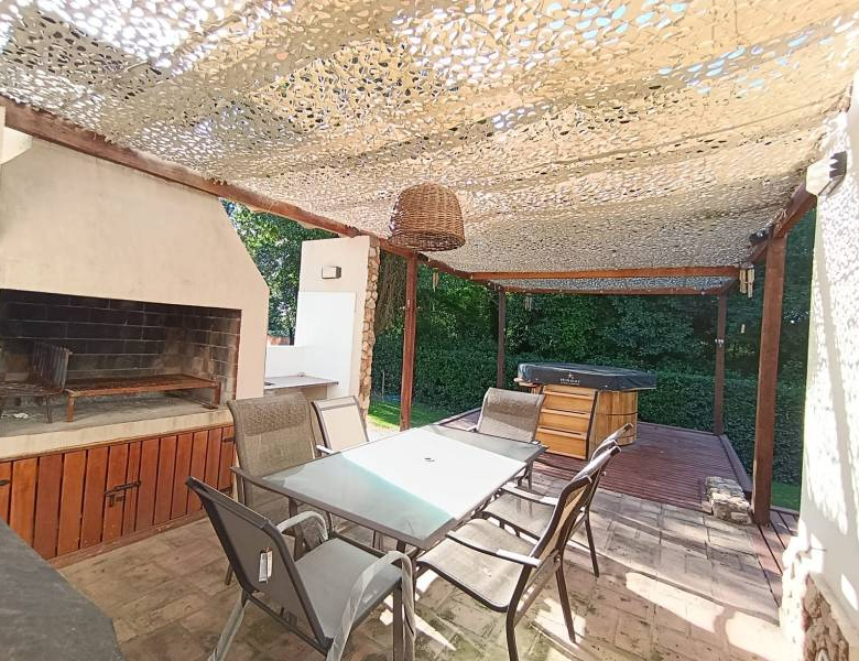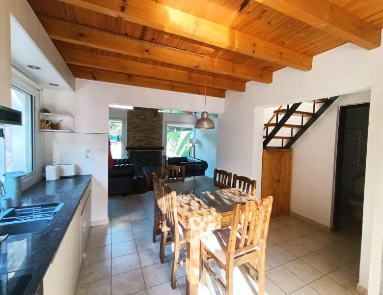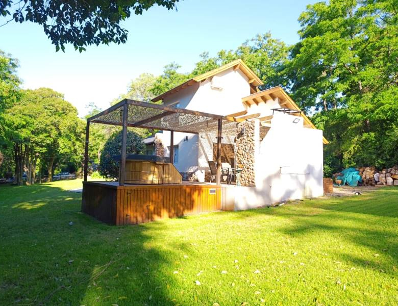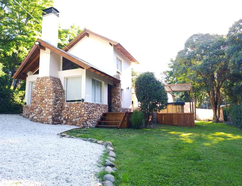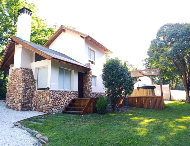 • La propiedad consta de 72 mts cuadrados cubiertos y esta distribuida con una habitación principal en planta alta, amplia cocina comedor, living con hogar a leña, 1 habitación, un baño completo y galería semi cubierta con parrilla y jacuzzi en la planta baja.