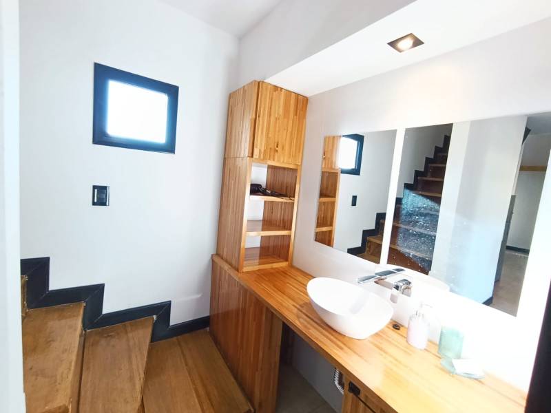 Planta baja: Amplia cocina comedor, baño completo, galería semi cubierta con parrilla.